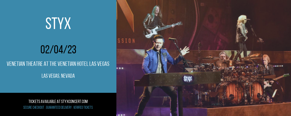 Can you think of a better way to spend one of your Saturday evenings this February, down at the awesome, Venetian Theatre At the Venetian Hotel Las Vegas of Las Vegas, Nevada, the best pop act around will be playing on he Las Vegas leg of the winter, 2023 tour. Pop lovers of Styx are so looking forward to this, it's going to be so energising, the moment you get through those doors! For tickets to Styx on Saturday 4th February 2023 you'll have to think fast, just follow the link on this page that says 'get tickets'…and thats exactly what it does!